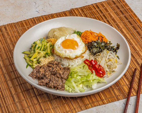 Our signature Bibimbap can be customized with your choice of five seasonal vegetables, beef, tofu, or spicy pork, beautifully arranged and served with homemade gochujang sauce.